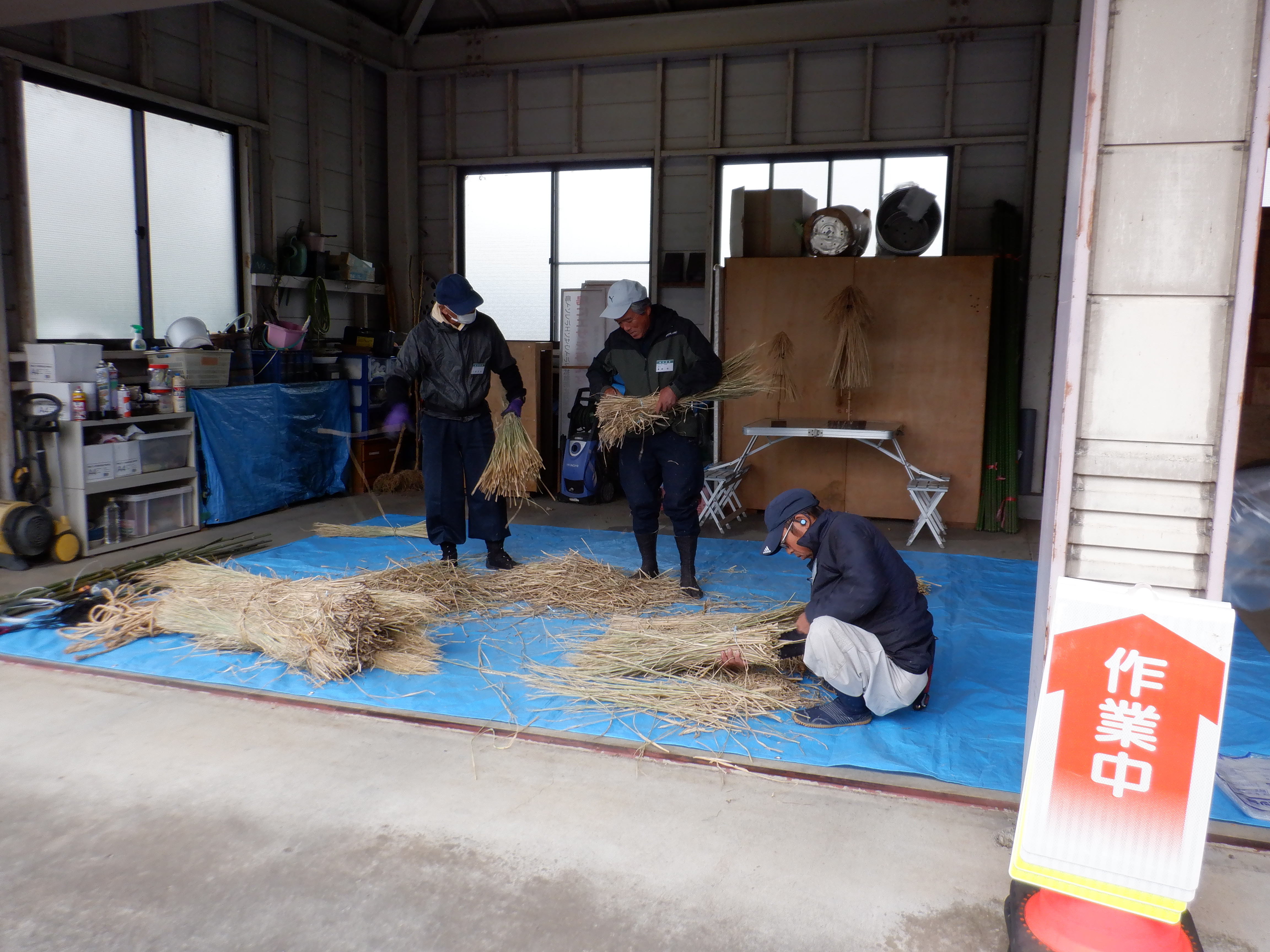 午後は敷地内にて、マツやウメの木の剪定や、寒気や風などを防ぐため,樹木の幹をわらで囲う「わら囲い」の